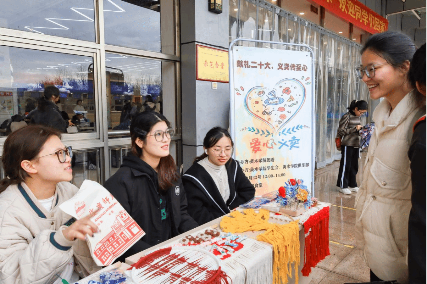 “快来领取自己的专属艺术品吧”“爱心义卖,奉献爱心”……志愿者们热情的服务不断吸引着来往“顾客”,不少员工穿梭在摊位前“淘宝”。生物科学类专业2022(1)班的王彦钰在得知最终所得将捐赠出去后,立即来到摊位前挑选心仪商品。“卖品有价,爱心无价,希望我也能为爱心公益奉献力量。”王彦钰说。