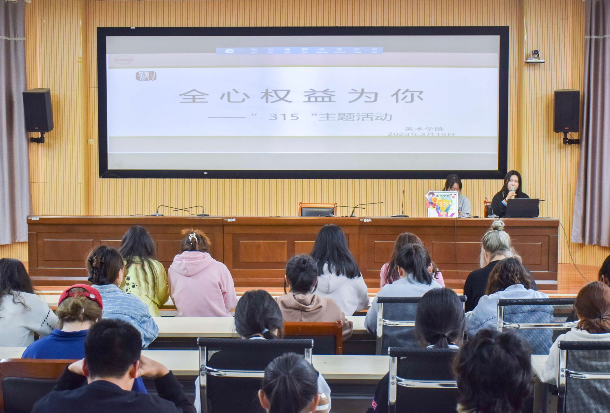活动负责人、环境设计专业2021级(1)班的闫静就日常中存在的消费侵权行为进行了介绍。她利用PPT展示与宣讲相结合的方式,立足当下维权热点话题,以个人财产诈骗为切入点,为同学们提供正确有效的维权途径。同时针对当下“网购”经济的弊害进行分析,呼吁大家加强维权知识学习,学会正确维护自己的合法权益。