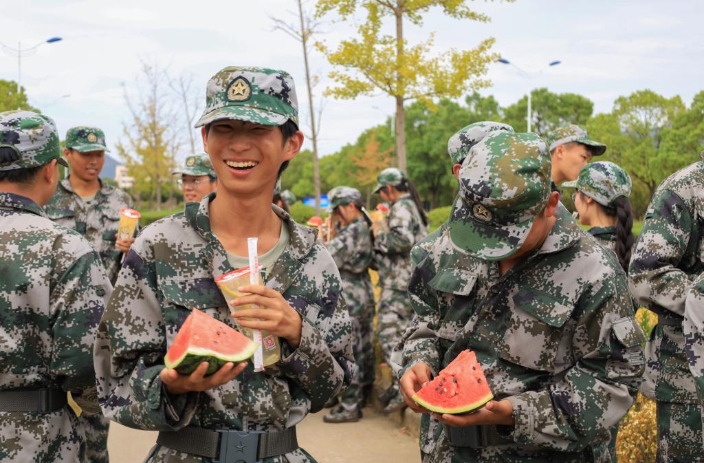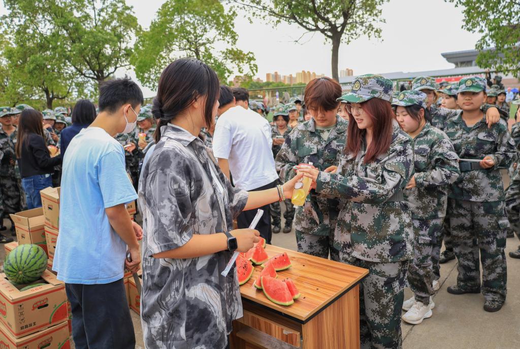 “谢谢学长学姐!”“西瓜好甜呀!”“柠檬水酸酸甜甜的,真好喝!”……收到冷饮和西瓜的新生们纷纷向学长学姐表示感谢。来自设计学专业2022级(3)班的刘静晨对此深有感触:“学长学姐们的‘送清凉’活动太暖人心了!”在她看来,这样的“清凉”在消除军训疲惫感的同时,更抚平了自己内心的燥热。“非常感谢老师和学长学姐们的关心,这将成为我军训期间最美好的回忆。”