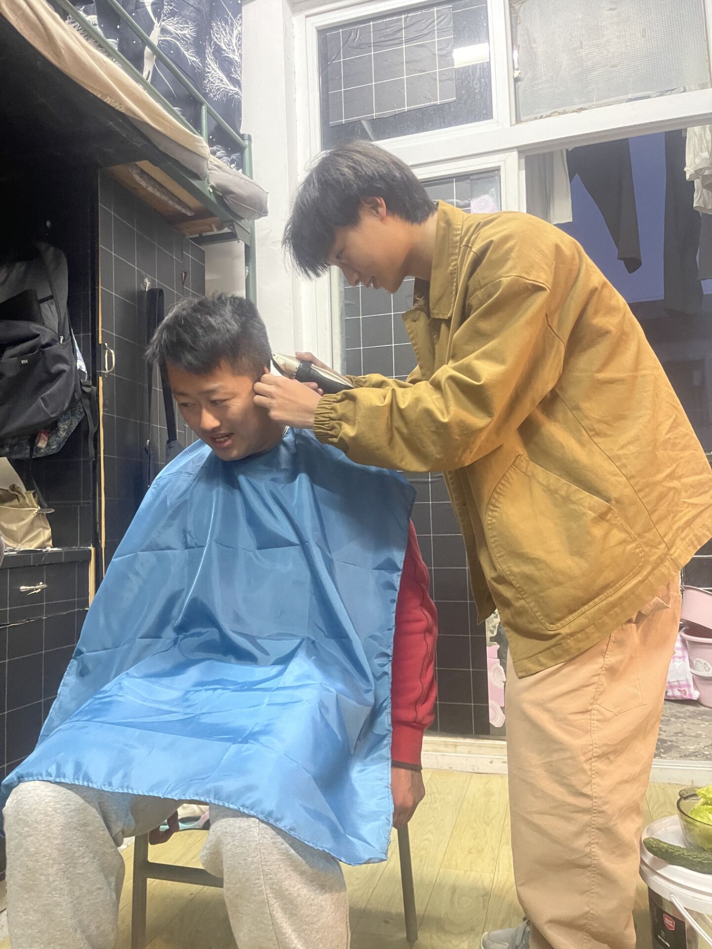 近日,设计学类专业2021(2)班的郭建彬成了班级的“名人”,原来,由于疫情形势发展严峻,员工请假外出理发不太方便,他便拿起了推子,为同学们提供无偿理发服务。