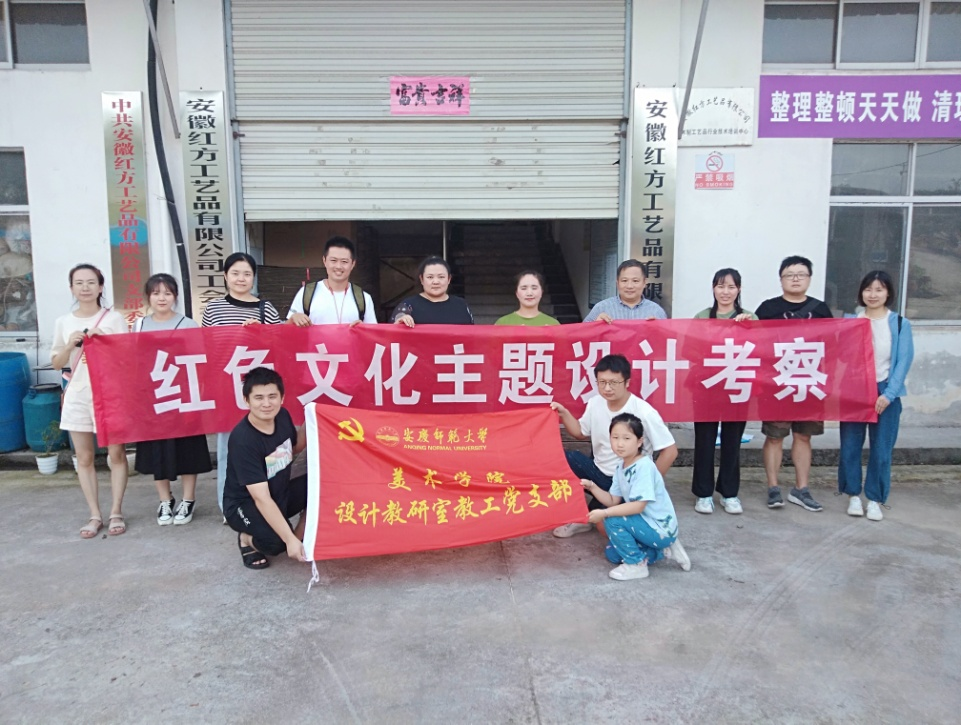 8月26日,WilliamHill中文官方网站设计系教工党支部党员一行来到安庆市岳西县响肠镇安徽红方工艺品有限公司进行红色文化主题设计考察。