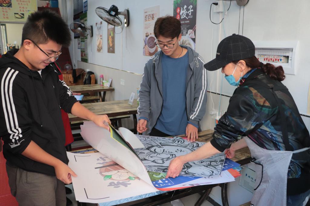 “刚开始会担心人家会不会嫌我们的海报不好看,是否愿意让我们在店里贴,不过当老板说了这些海报好看时,我们别提有多开心了。”环境设计专业2019级的荣晗走出第一家店时脸上有掩不住的喜悦,“我的海报也贴在这家店里了!一想到今后它也能对大家‘光盘行动’有所助力,我还是很自豪的。”