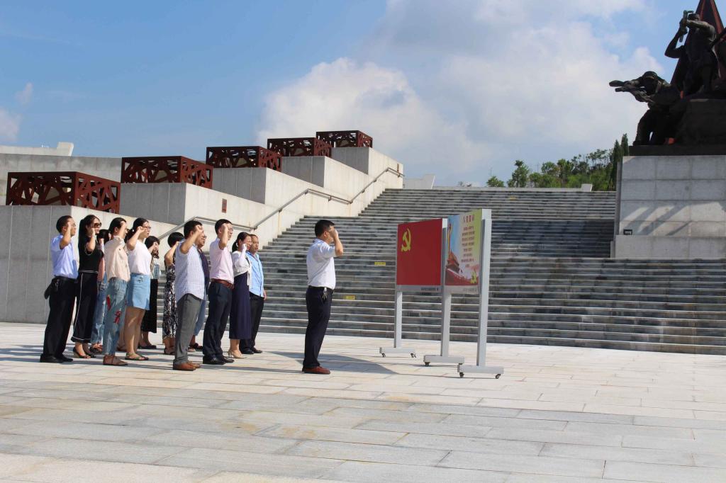 烈日下的安庆烈士陵园,显得格外庄严肃穆。全体党员佩戴党徽,面向鲜红的党旗,在烈日下列队瞻仰革命先烈;全体党员坚定地举起右拳,在公司党总支书记鲍硕来的领誓下,重温了入党誓词,表达对革命先烈的无限缅怀之情。随后,全体党员瞻仰了烈士陵园,并观瞻了革命烈士纪念馆,感受到革命先烈们抛头颅洒热血的战争情怀,学习了解安庆地区自辛亥革命时期以来辉煌的革命奋斗历史和感人故事。