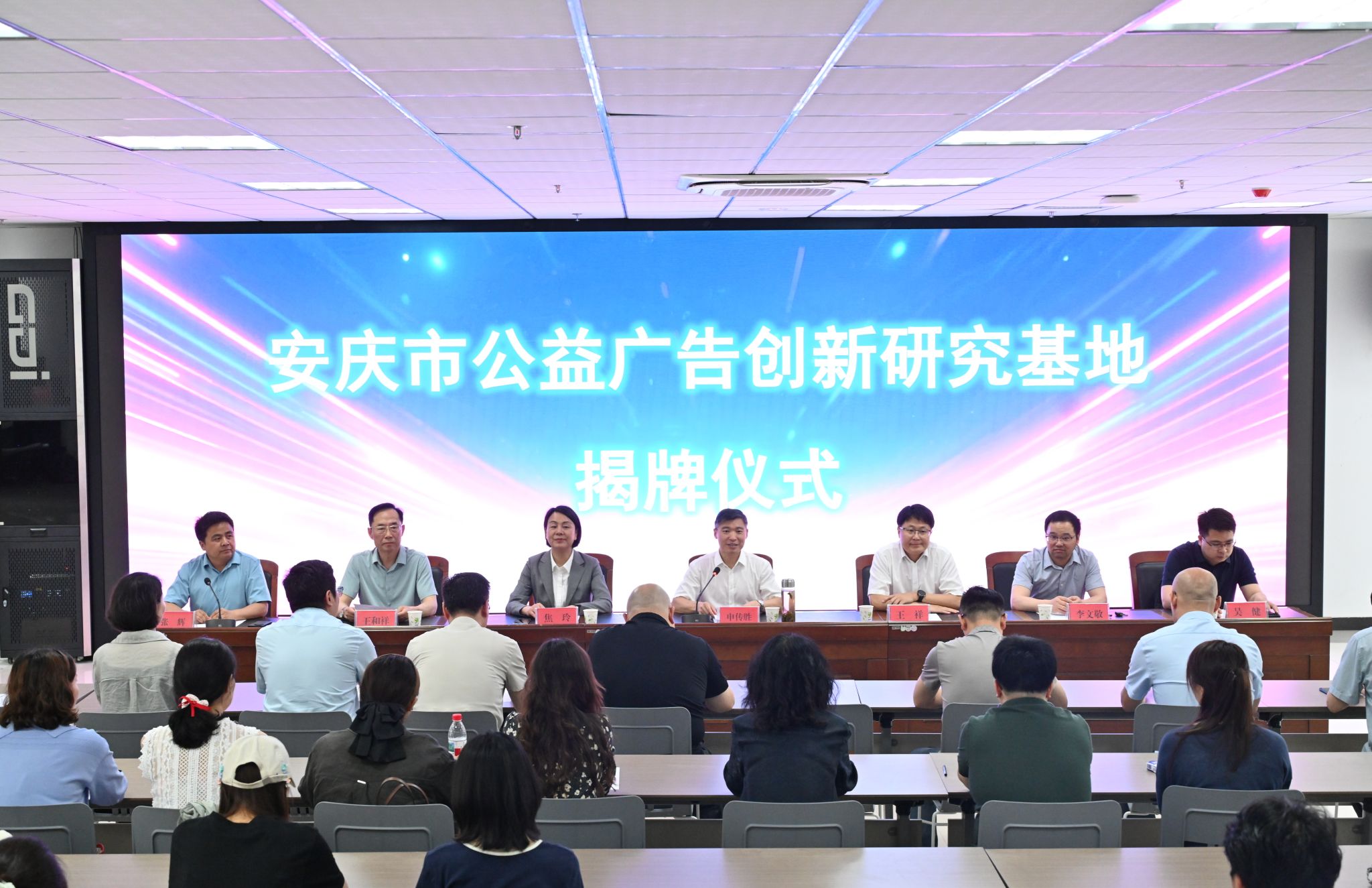 6月4日,安庆市公益广告创新研究基地揭牌暨2025年安庆市公益广告大赛启动仪式在公司WilliamHill中文官方网站数字创意实践实验中心举行。公司党委常委、副董事长申传胜出席揭牌仪式并致辞。安庆市委宣传部副部长、文明办主任王祥,市场监管局党组书记、局长焦玲,新闻传媒中心副主任李文敬出席揭牌仪式。安庆市广告行业协会会员代表、公司科研处相关负责人、WilliamHill中文官方网站相关负责人及师生代表参加会议。公司党委书记张辉主持揭牌仪式。