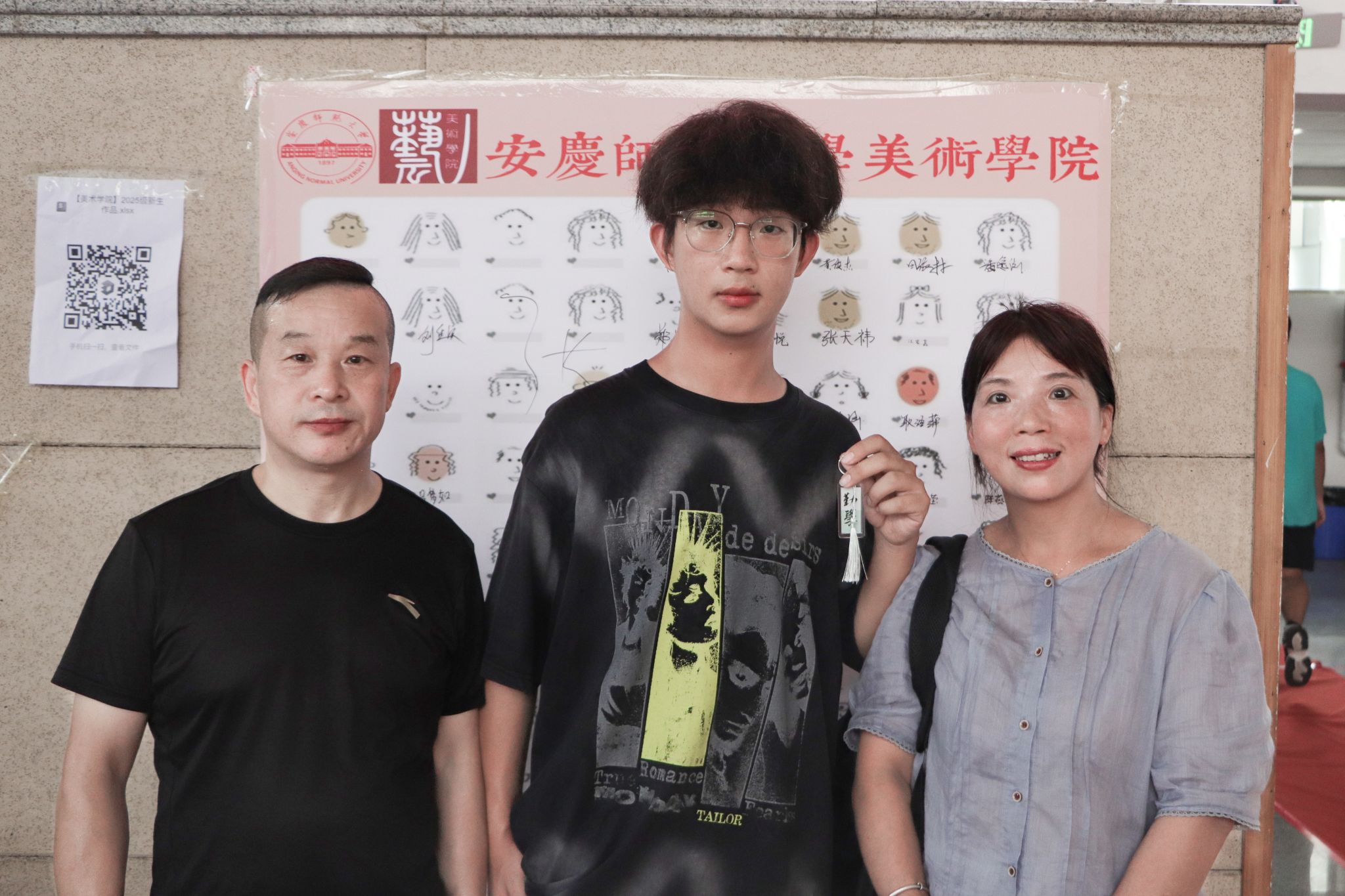 “欢迎2025级美院新生”“鲜衣怒马少年时,不负韶华行且知”报到现场,一幅红底金字的欢迎横幅格外吸睛,这幅由书法俱乐部成员、美术学专业2024(2)班胡雨林,2024(4)班王欣然、卢颖僖、严昕竹四人共同书写完成的横幅字样清晰、笔势灵动,尽显洒脱飘逸之态。“欢迎新来的学弟学妹们,来到这里就是一家人啦!”美术学专业2024(3)班的戴振凤正热情招呼前来报到的新生。