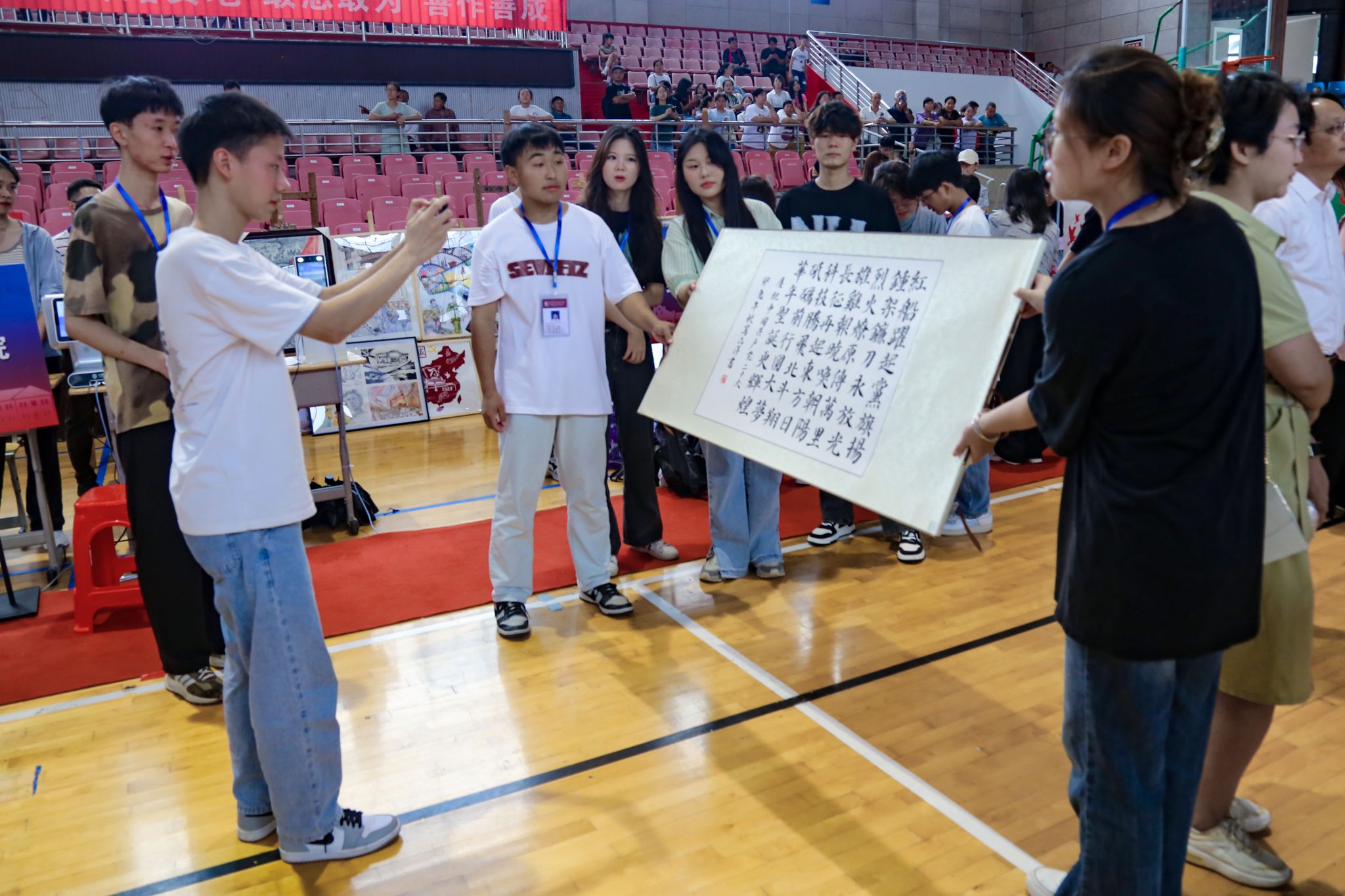 线条刚劲有力、纹样精致细腻、构图疏密有致,《为中国喝彩》剪纸作品一经“亮相”,就吸引了在场不少员工的目光。在谈及为何将剪纸作品作为开学作业的原因时,美术学专业2023(1)班的许孟彤表示,剪纸艺术保留了中国传统文化的基因,蕴含着深刻的人文精神,她希望能将这项技艺传承下去。