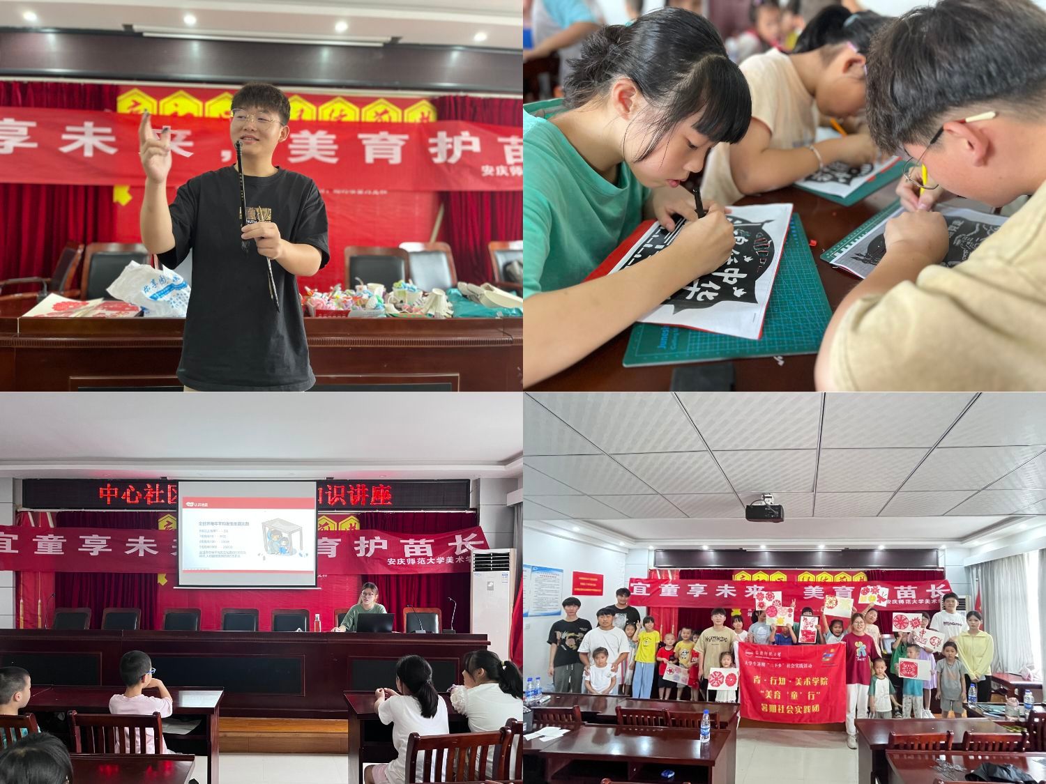 红色影片树信念、手工创作亮新意、书法艺术彰底蕴……近日,WilliamHill中文官方网站青•行知“美育‘童’行”暑期社会实践团前往安庆市宜秀区大龙山镇中心社区开展系列美育课堂,团队成员结合专业知识为30余名孩子带来了9堂生动的艺术思政课。