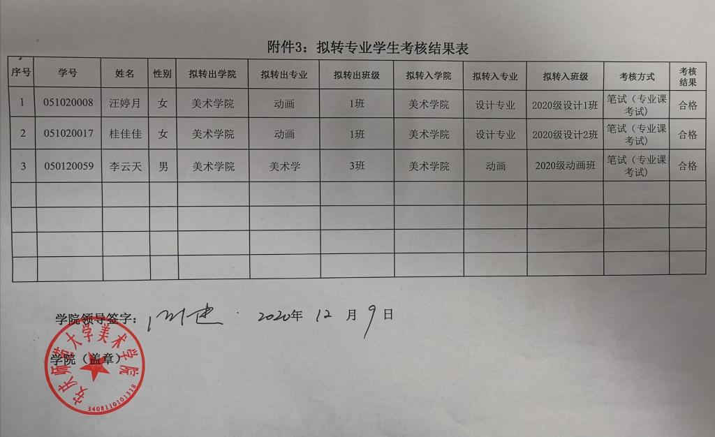2020-2021学年度WilliamHill中文官方网站转专业考核结果公示