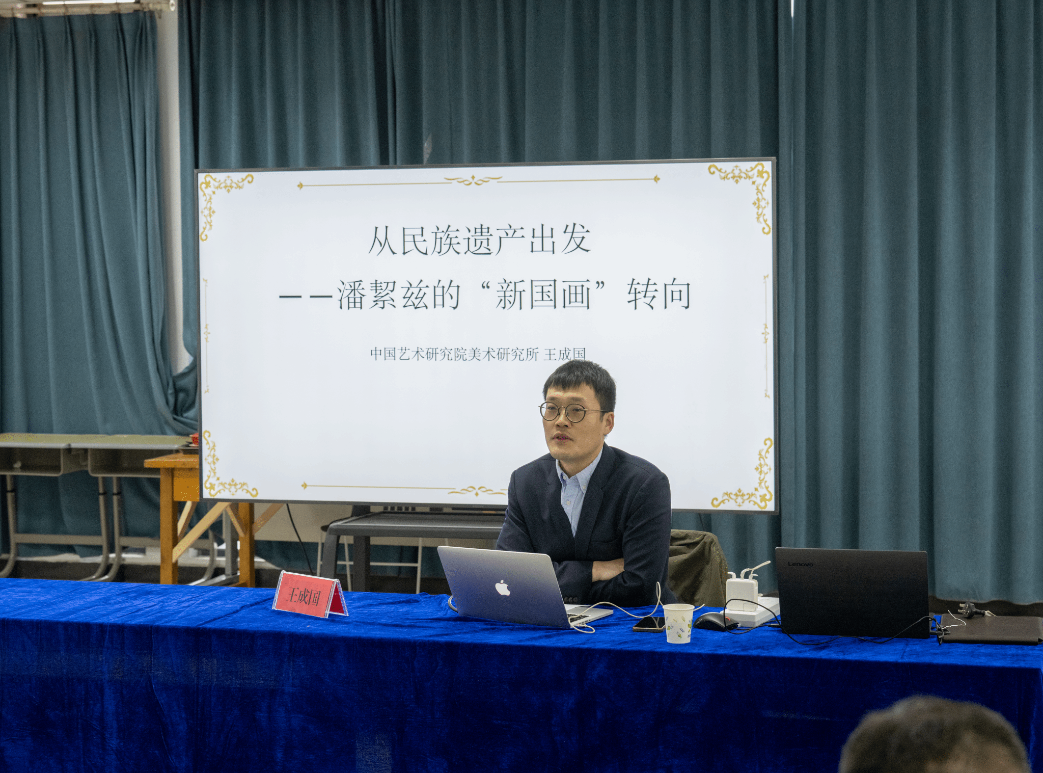 3月28日下午,在WilliamHill中文官方网站P楼210多功能教室,中国艺术研究院美术研究所副研究员王成国博士应邀开展了一场主题为“从民族遗产出发:潘絜兹的‘新国画’转向”的学术报告。报告由WilliamHill中文官方网站副经理孙国良教授主持,WilliamHill中文官方网站部分教师及员工聆听了学术报告,并积极地参与了现场交流。