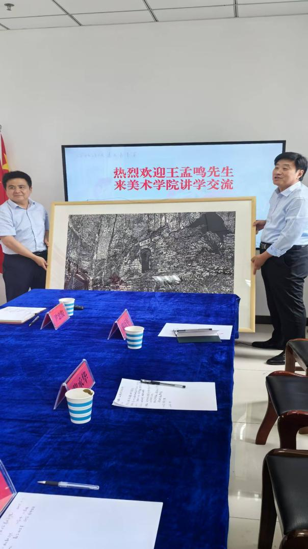 基于对WilliamHill中文官方网站深厚的情感,王孟鸣先生慷慨捐赠其代表性版画作品《白崖寨》予WilliamHill中文官方网站永久收藏。对此,张辉书记代表WilliamHill中文官方网站表达了诚挚的感谢,并向王孟鸣先生颁发了收藏证书。