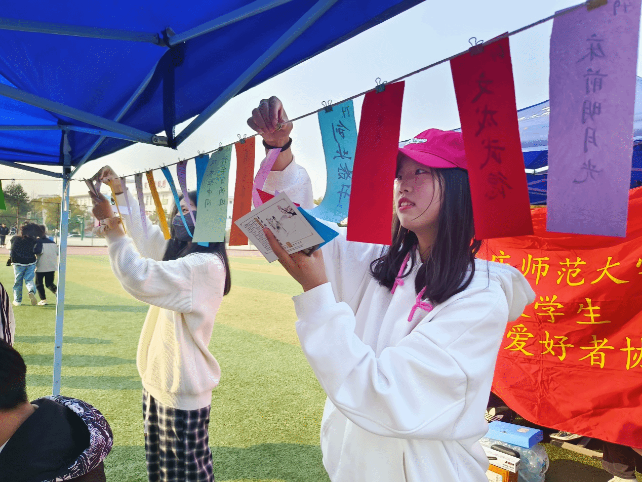 热情洋溢的协会成员,精美的书签染卡,妙趣横生的字谜,无一不在吸引着人们的目光。亦庄亦谐的字谜,方寸之间蕴含的是传统文化的魅力,把独特的中华文明载体汉字文化和文学巧妙地维系、巩固和张扬开来。