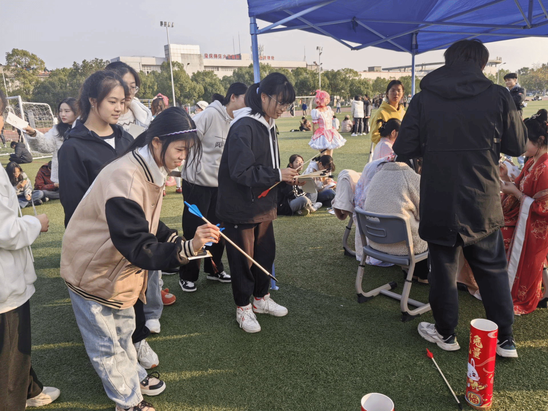 11月25日,校老员工书画协会联合老员工“漫无限”动漫社、老员工华夏文礼汉服社、老员工民乐协会、老员工天文爱好者协会于东门操场开展“国风•中华传统文化之旅”活动。