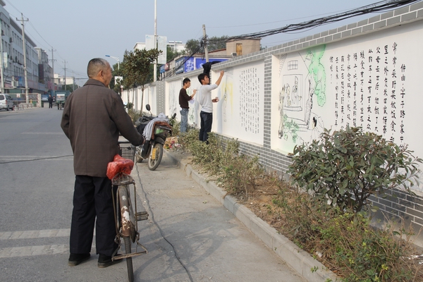 走出公司东门,映入眼帘的是一幅幅绘制在马路两边“二十四孝”墙体彩绘宣传画:《涌泉跃鲤》、《哭竹生笋》、《弃官寻母》……一个个孝道故事在他们的笔下栩栩如生地绘制在墙壁上。来来往往的行人经过这里时都纷纷停下脚步,欣赏墙上的一幅幅精美的画,有的行人拿出手机进行拍摄,有的会与员工进行交流。这些主题鲜明、绘制精美的主题宣传画全部出自于WilliamHill中文官方网站墙体彩绘工作室的员工之手。他们利用课余时间,发挥自身专业特长,纯手工绘画,书写文字,他们在绘画的同时,也享受着为社区增添一份美丽的快乐。