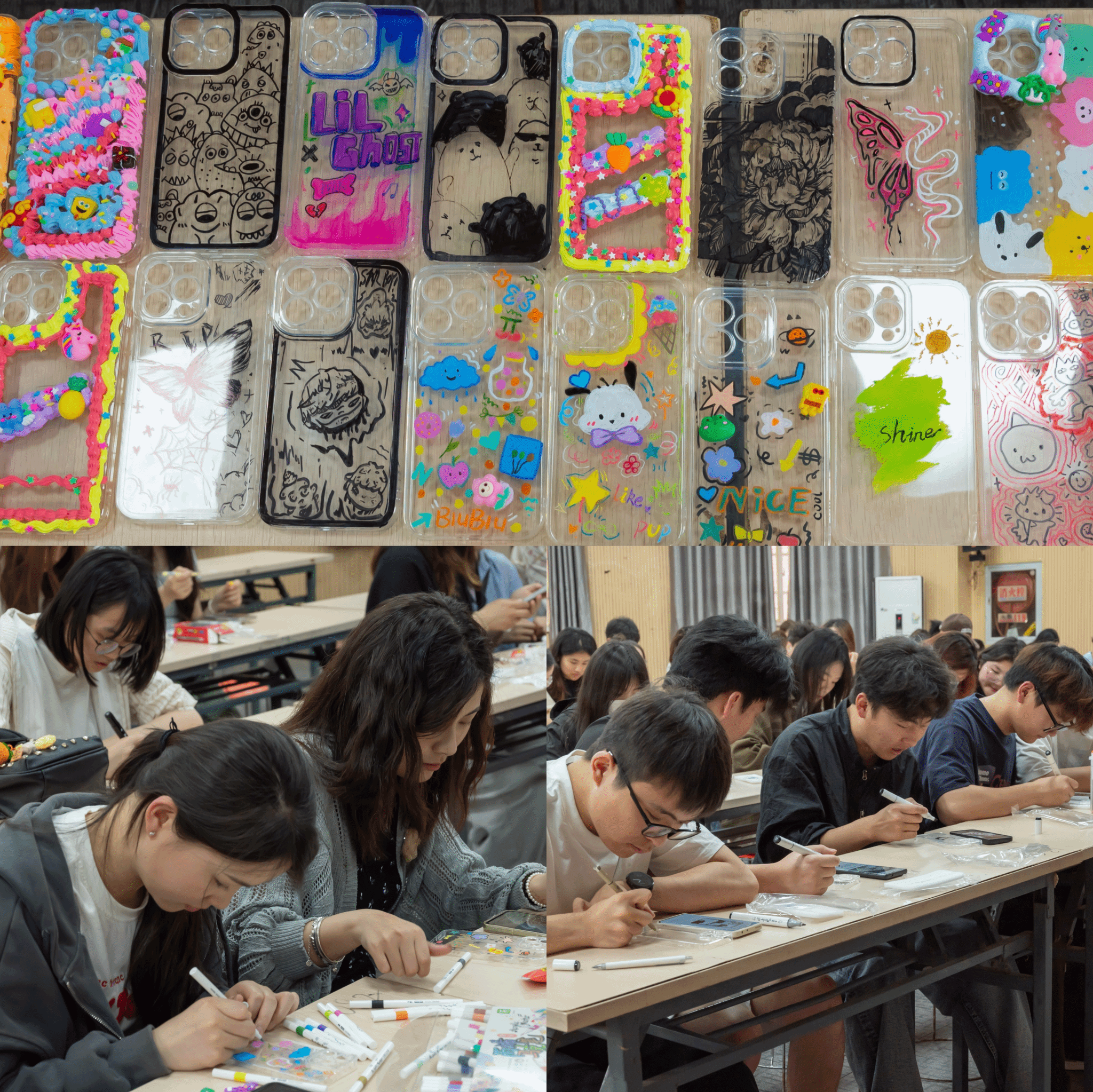 为了让员工拥有更佳的活动体验感,早在一周前,活动负责人、美术学专业2023(3)班的伍可凡便着手准备活动所需材料。“我们准备了几十个透明的手机壳,以及颜料和颜色各异的奶油胶,希望参与员工可以自由挑选,制作出自己喜欢的手机壳。”伍可凡表示,活动开始前,她还号召参与员工自己携带一些“趁手”的工具,方便在手机壳上更细致地作画。