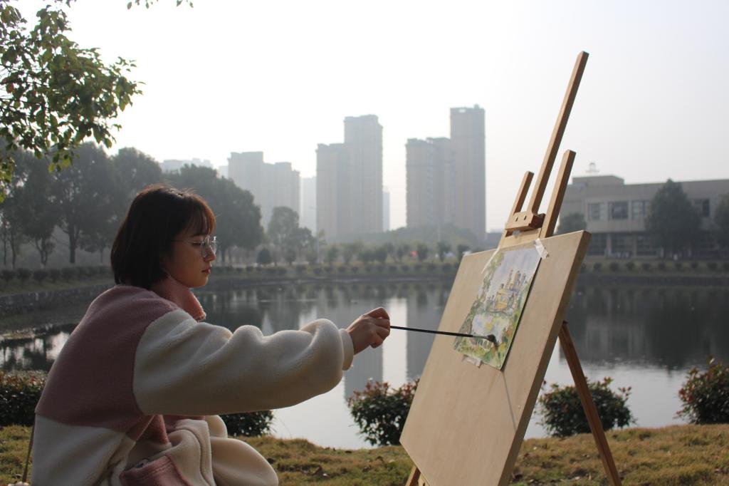 20级美术学一班的周佳敏说:“喜欢绘画,是因为它可以使我放松,陶冶情操。想想看当一个人沉浸在画海中,这是一件多么美妙的事情呀!尤其是在校内写生,当我坐在画板前,描绘着花、人、景、物时,心也不禁陶醉在这美妙的风景中……”